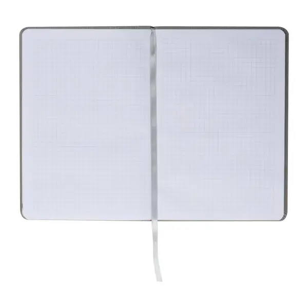 192 oldalas, kockás, A5-ös notesz, strukturált felülettel, könyvjelzővel és kis zsebbel egy toll számára.