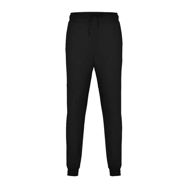 Hosszú melegítőnadrág, behúzózsinóros, széles derékpánttal, alul szűk passzékkal, megerősítő varrásokkal, díszcsíkos oldalzsebekkel és díszvarrásos farzsebbel.