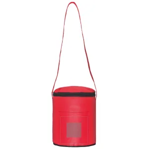 Kerek non-woven anyagból készült, nagy belső rekesszel, zsebbel és vállpánttal ellátott hűtőtáska.