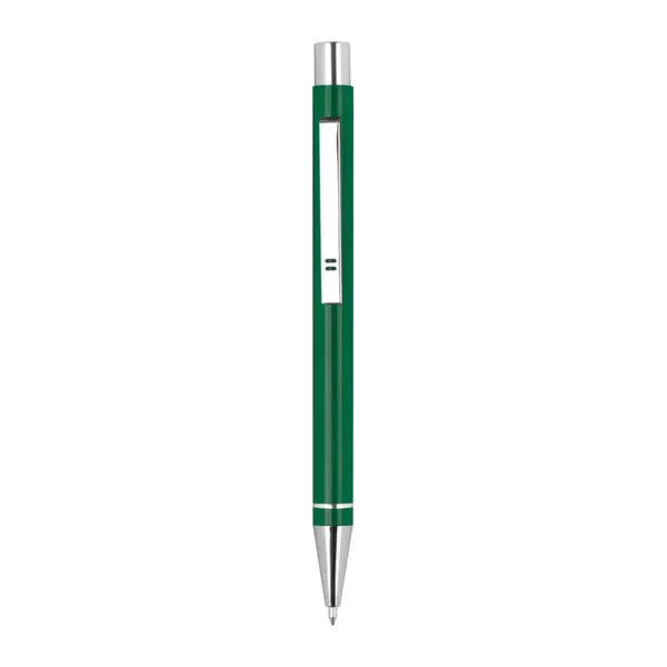 Alumínium fém golyóstoll, kék félig zselétintás (semi-gel) utántöltővel, bordázott markolattal. Tollhegy vastagsága: 1 mm.