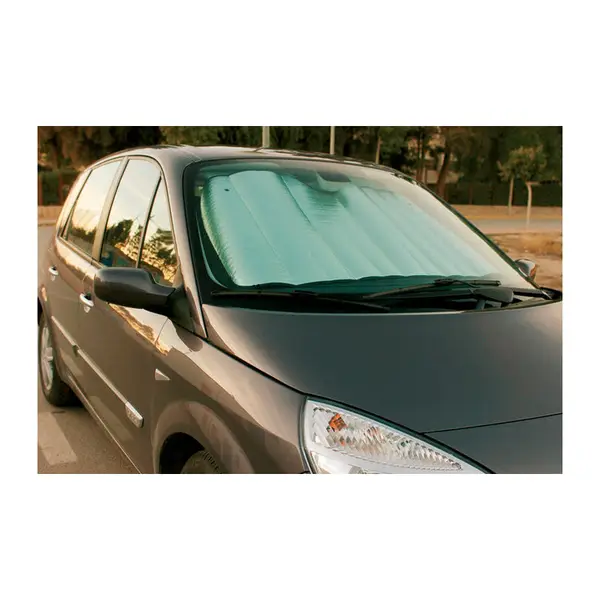 Alufóliával kasírozott, nagyméretű napellenző, szélvédőre tapadókoronggal rögzíthető.