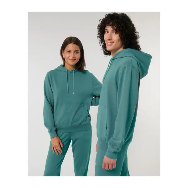 Stílusos megjelenés, két rétegű kapucnival, kenguruzsebbel és vintage mosott hatással rendelkezik. Minden darab egyedi; kövesse a kezelési útmutatót.