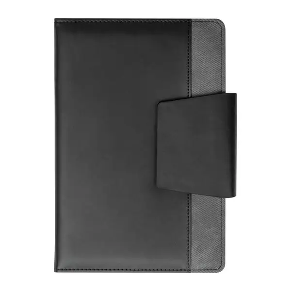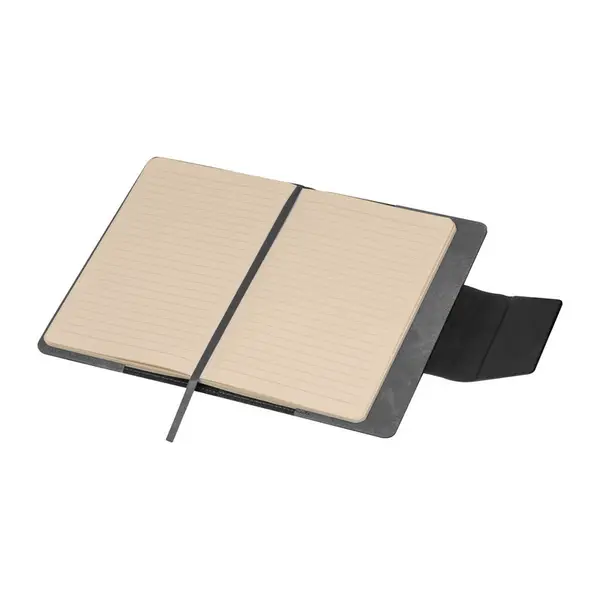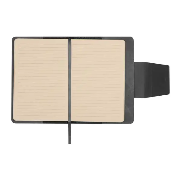 Újrahasznosított PU anyagból készült A5-ös vonalas jegyzetfüzet mágneszárral. 160 oldal cukornádpapírból készült, vonalas lapot tartalmaz, kivehető betéttel és praktikus könyvjelzővel.