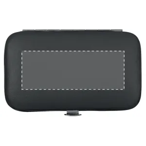 Manikűr készlet, melynek tartalma egy olló, egy körömcsipesz, egy körömreszelő és egy körömtisztító, műanyag tokba csomagolva. Ideális utazáshoz.