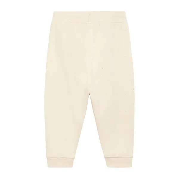 Kényelmes melegítőnadrág bordázott derékrésszel és szegéllyel, hozzáillő lapos húzózsinórokkal és hímzett fűzőlyukakkal. Tartós, dupla varrású oldalsó varratokkal a kicsik kényelméért és stílusáért.