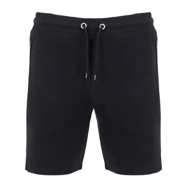 Rövidnadrág elasztikus derékpánttal és fém fűzőlyukkal behúzható fűzővel. Két oldalzsebbel, azonos tónusú fordított cipzárral és húzókával. Oldalt azonos tónusú sávval. Dísz cipzárfedő. Hátul patentos zsebbel.