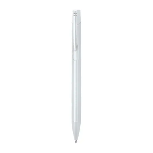 Monokróm (egyszínű) golyóstoll újrahasznosított alumíniumból, kék tintával író nagy kapacitású betéttel.