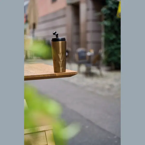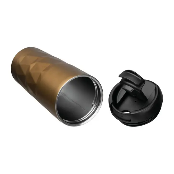 Duplafalú, rozsdamentes acél, thermo utazóbögre, szivárgásmentes műanyag fedővel. Űrtartalom 500 ml.