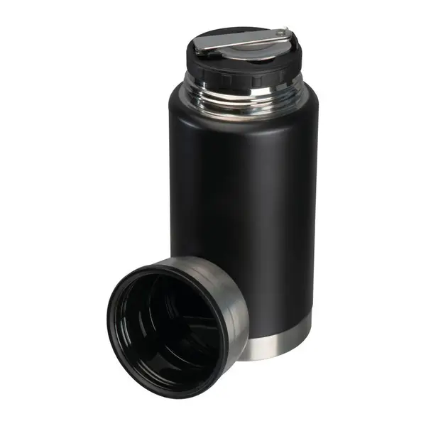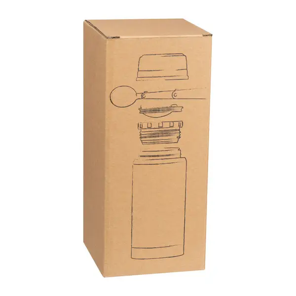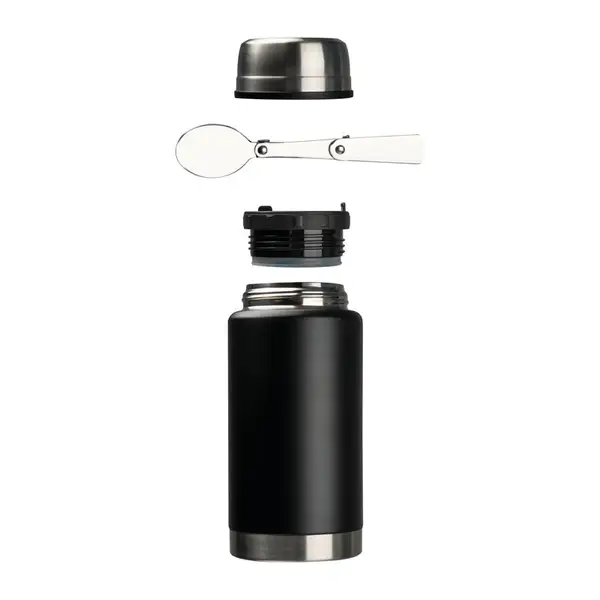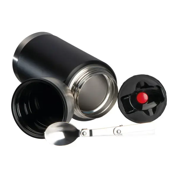 Rozsdamentes acélból készült, duplafalú, szivárgásmentes vákuum ételhordó, fedelében összecsukható kanállal, 750 ml-es űrtartalommal.
