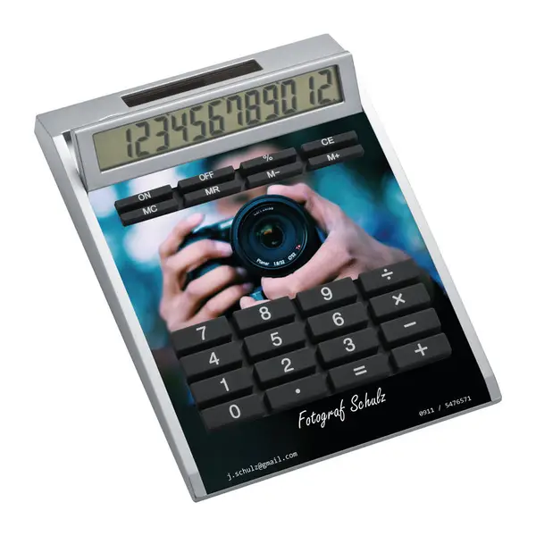 Számológép CrisMa dizájnnal, (12 számjegy kijelző, dual power) műanyagból, ezüst színben. Alkossa meg egyedi számológépét, pont ahogy elképzelte!