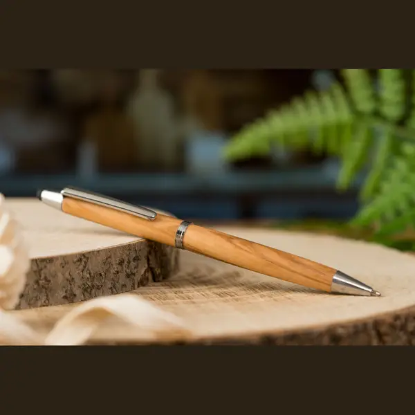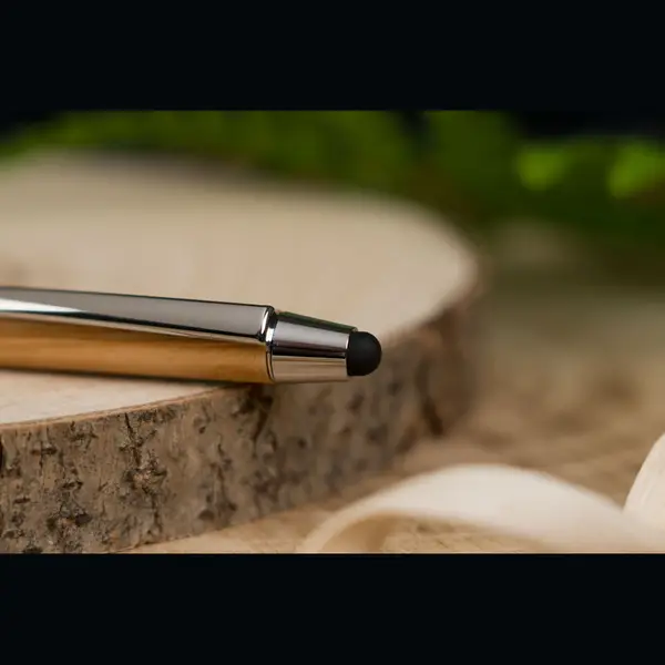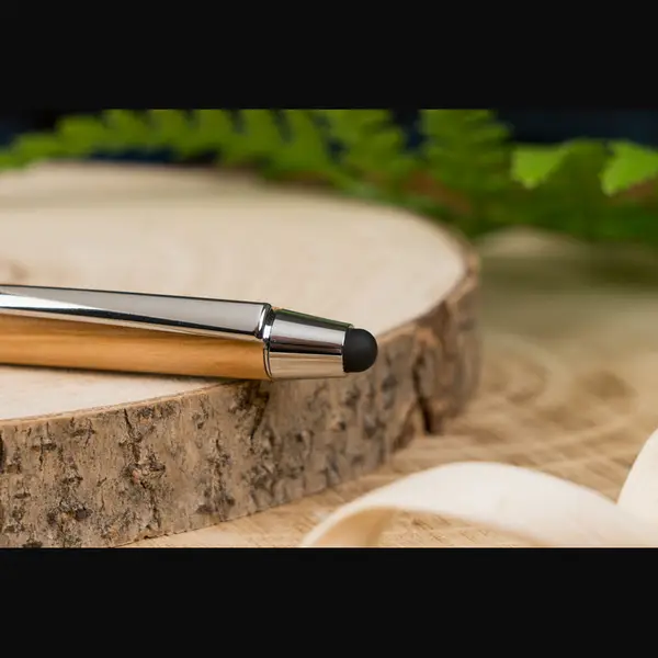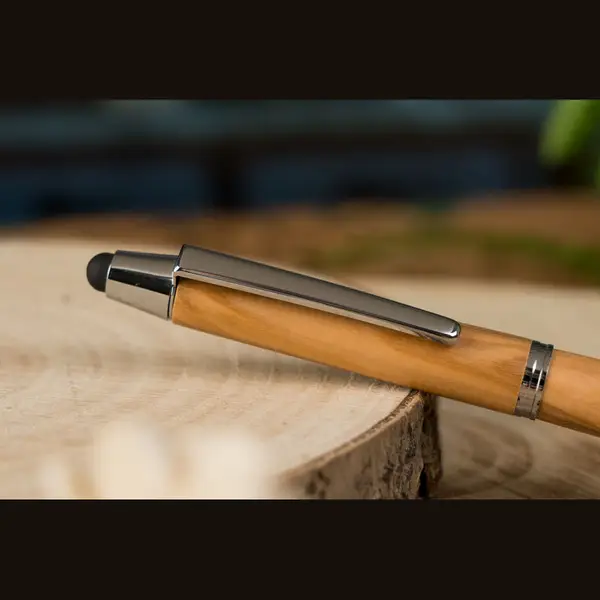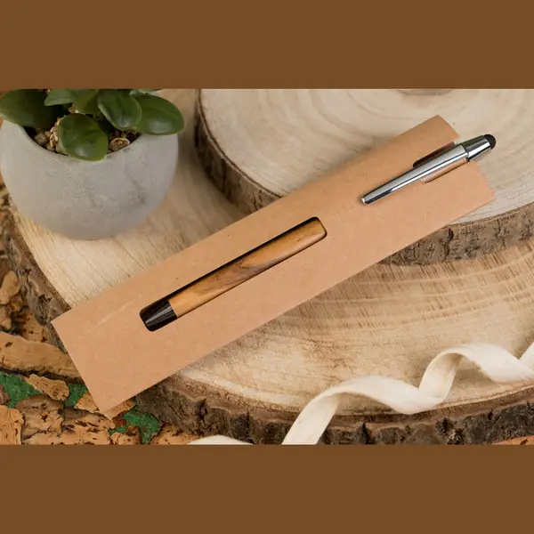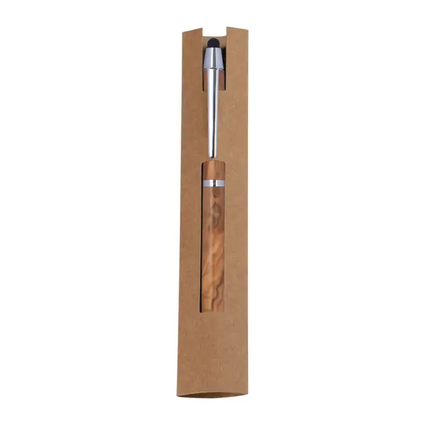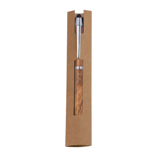 Olajfából készült, kéken író golyóstól érintőképernyős funkcióval. A terméket karton tokba csomagolva szállítjuk.