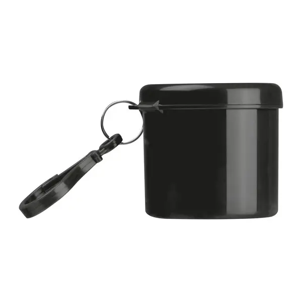Ftalátmentes, átlátszó esőkabát, műanyag karabineres dobozba zárva.