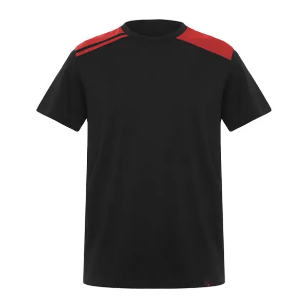 Rövid ujjú póló különféle színkombinációban.· Crew nyakkivágás, kontrasztos fedett belső varrással. · Oldalsó varrás. · Kontrasztos vállrészek és részletek.