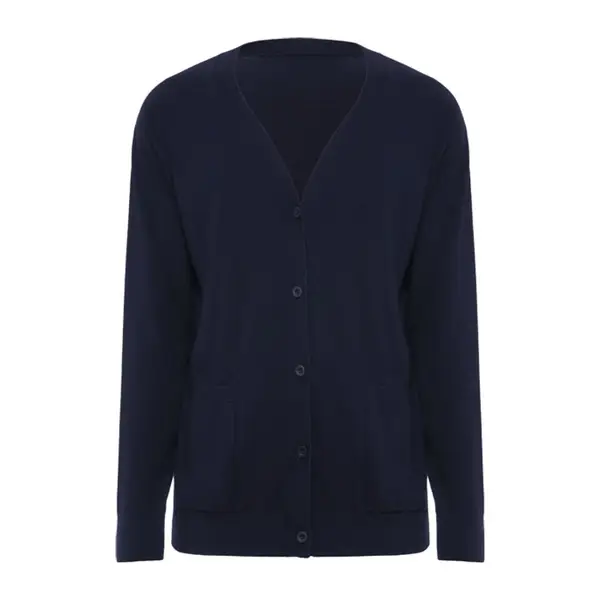 V·nyakú női kabát puha varrású anyagból. Elöl öt egymáshoz illő gombbal. Két foltzseb. Bordázott anyagból készült mandzsetta és rugalmas derékpánt.