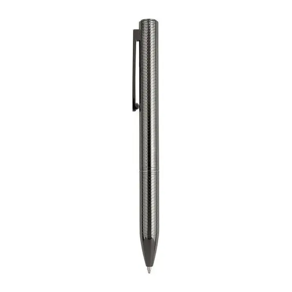 Ideálisan megtervezett és teljesen fémből készült golyóstoll, tökéletesen működő rugós klipszel, valamint divatos, különleges mintával ellátott felülettel. Kiváló minőségű, nagyobb méretű kék tintát tartalmazó utántöltővel. 1 mm-es heggyel van ellátva a sima írás érdekében. Ez a kiváló, tartós golyóstoll Pierre Cardin díszdobozban érkezik, extra fekete tintával, Jumbo utántöltővel és eredetiségi tanúsítvánnyal.