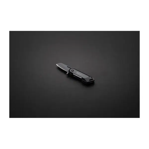 Zsebméretű, összecsukható kés minimalista dizájnnal és nagy teljesítménnyel. A fekete, összecsukható kés ígényes alumíniumból és prémium minőségű 420 rozsdamentes acélból készült. A hosszú élettartamú kés könnyen használható és a helyére rögzíthető. Az erős kialakításnak köszönhetően mind beltéri, mind kültéri használatra tökéletes. Elegáns ajándékdobozban.