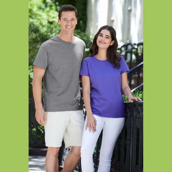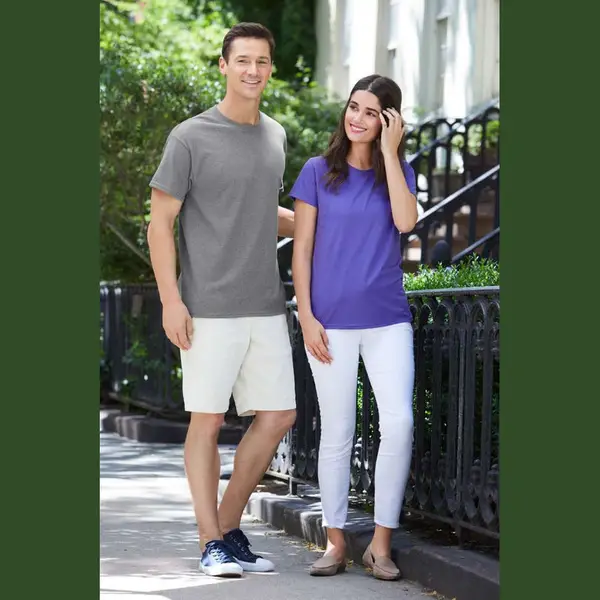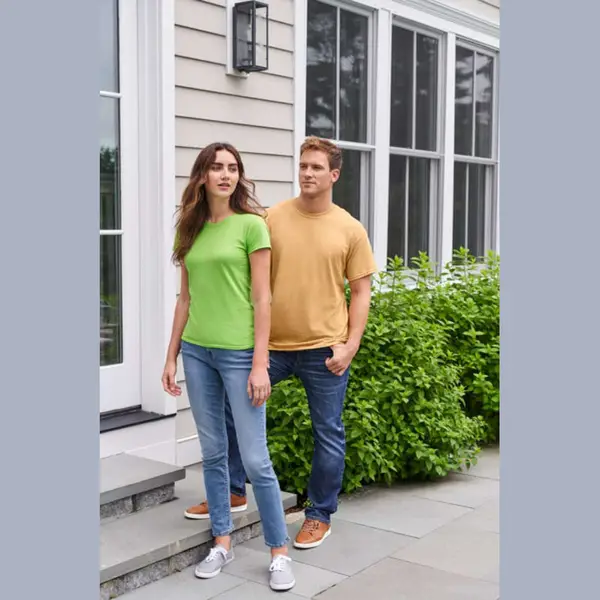 100 % pamut női rövid ujjú póló, alávarrott 1,3 cm-es nyakrésszel és vállrészzel, letéphető szatén címkével. Dupla varrással a nyakrészen, az ujjakon és az alján. Alakított oldalvarrással a nőies formáért.