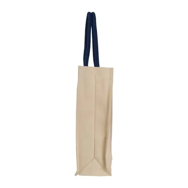 Robusztus és tartós vászontáska (320 g/m²) hosszú fülekkel és stabil aljjal, zsebbel az elején.