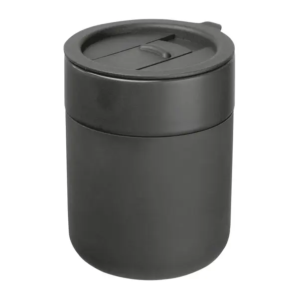 Kerámia utazó bögre szilikon bevonattal, csúsztatható ivónyílással a fedélen, 340 ml-es kapacitással.