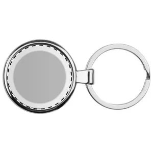 Kör formájú elegáns fém kulcstartó, fényes keretben, matt króm, jól emblémázható felülettel, környezetbarát csomagolásban.