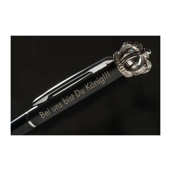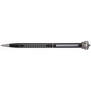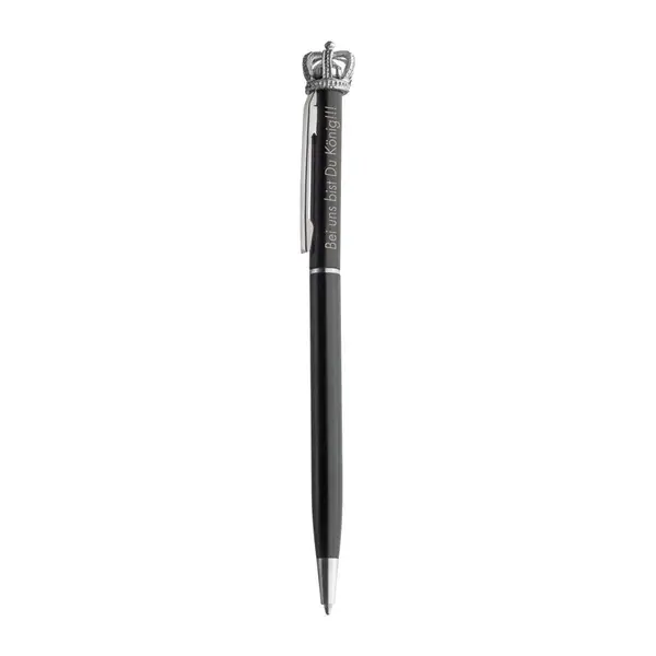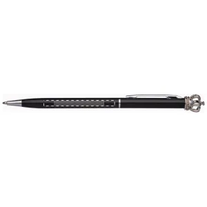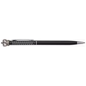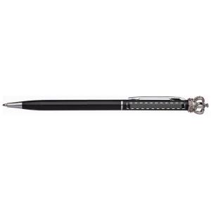 Vékony csavaró mechanikás fém golyóstoll, kék tollbetéttel. A korona díszítés és benne az eredeti Swarovski kő különlegessé teszi a tollat.
