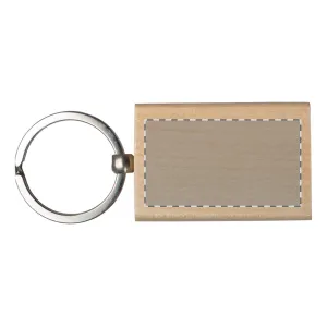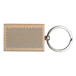 Téglalap alakú bükkfa kulcstartó, fém kulcskarikával felszerelve.