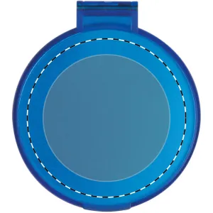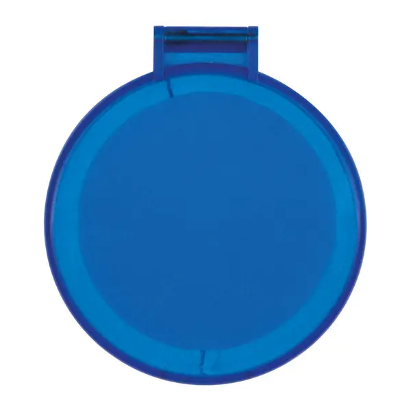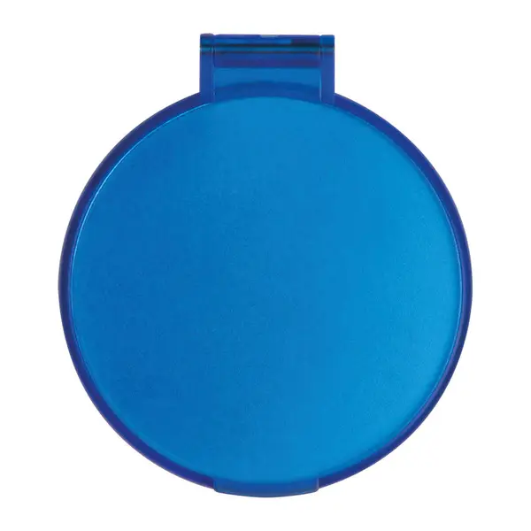 Kerek, hordozható kozmetikai zsebtükör matt felületű műanyagból.