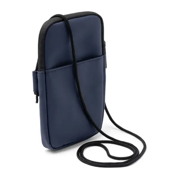 Cipzárral zárható PU bőrből készült mobiltelefon tartó. Külső zseb és állítható pánttal.