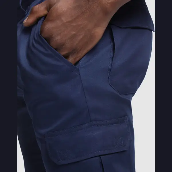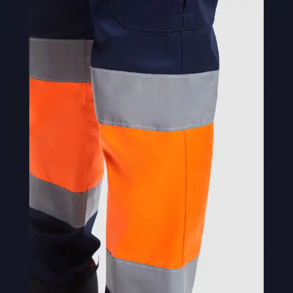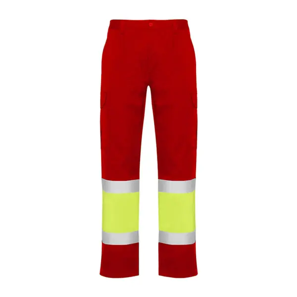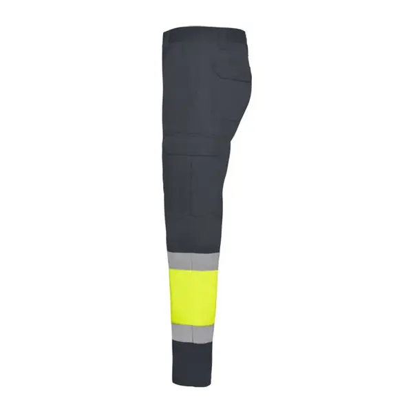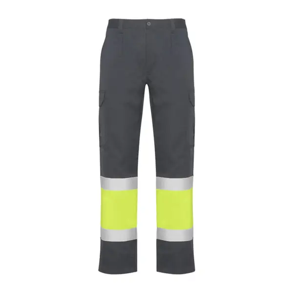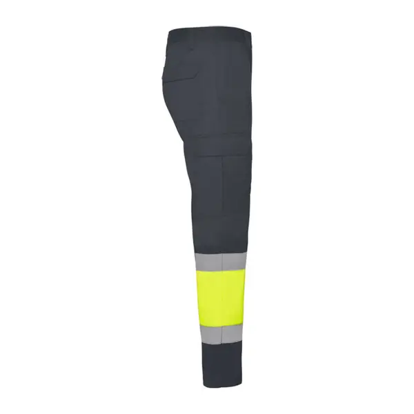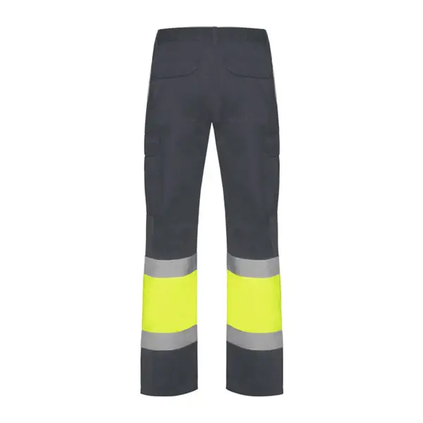 Jó láthatóságot biztosító, sokzsebes nyári nadrág. · Hátul elasztikus derékpánt. · Hátul két hajtókás zsebbel, tépőzárral. 3 Elöl két réselt zsebbel és két oldalzseb sarkakkal és tépőzáras hajtókával. · Két színből kombinálva, és fényvisszaverő szalagokkal.