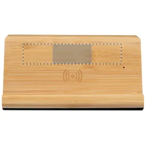 Bambusz hangszóró 1200 mAh-s akkumulátorral, töltőkábellel és indukciós vezetéknélküli mobiltelefon töltő funkcióval. Minden QI kompatibilis telefon töltésére alkalmas.