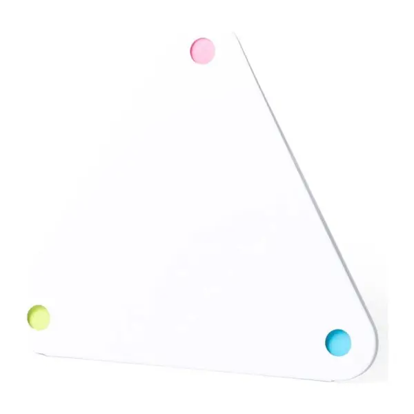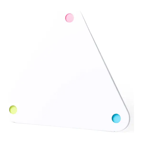 Háromszög alakú, újrahasznosított anyagból készült jegyzettömb, öntapadós jegyzetlappal, 2 méretben. 20 db hatszögű és 60 db háromszögű lapot tartalmaz.