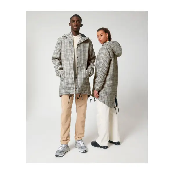 Elegáns uniszex tweed dzseki fém patentokkal, paszpólos zsebekkel és dupla rétegű kapucnival. Belső részén gyémántmintás steppelés található, valamint könnyen hozzáférhető cipzárak.
