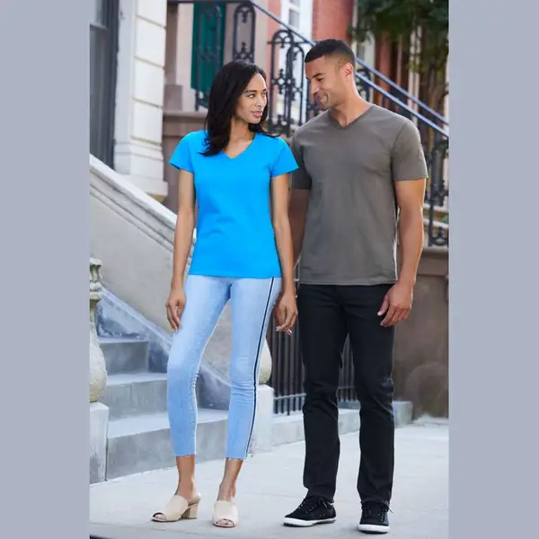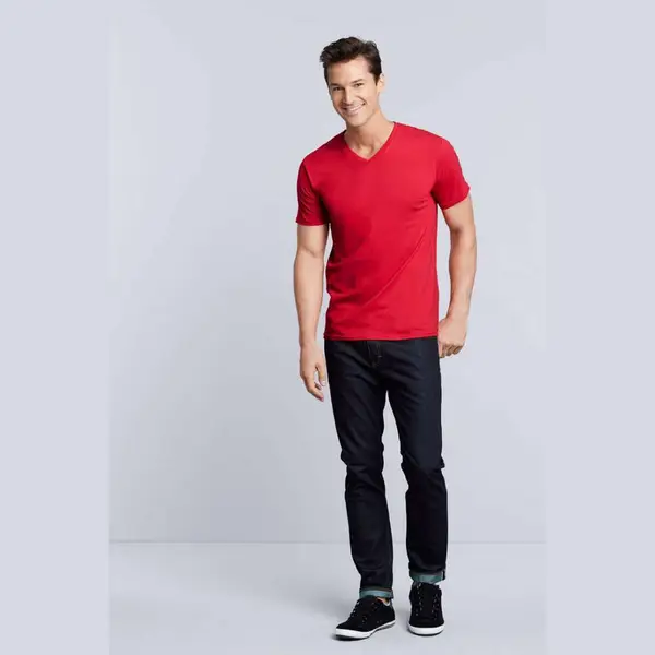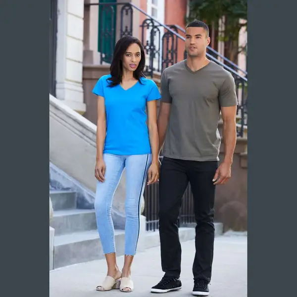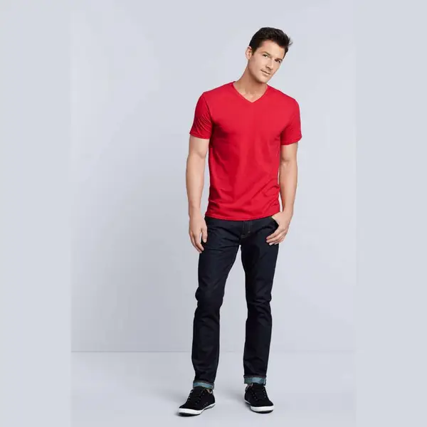 185.0 g/m2 (White 180.0 g/m2);100% gyűrűs fonású pamut;Eurofit - keskenyebb szabású váll és ujjak;Derékszögű V-nyakkivágás;Válltól-vállig pántos;Kitéphető címkére váltás folyamatban;Dupla tűzésű karkivágás és derékrész;