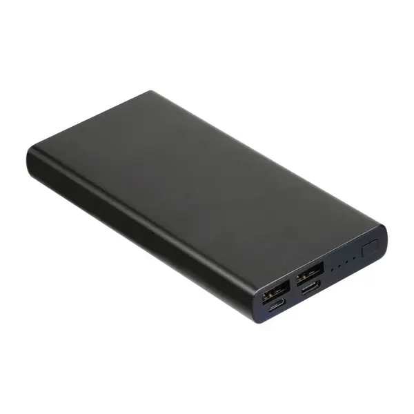 10.000 mAh kapacitású, újrahasznosított alumíniumból készült külső akkumulátor, LED töltöttség kijelzővel és USB-C töltőkábellel. Két USB , micro-USB és USB-C bemenettel rendelkezik.