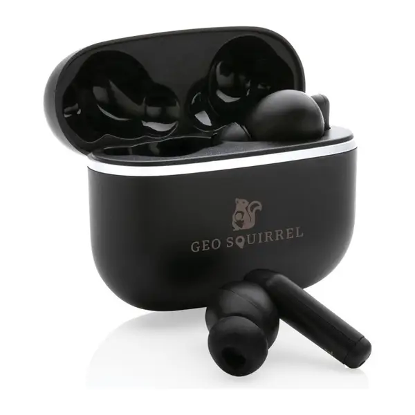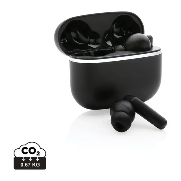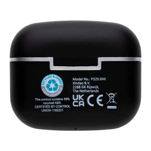 Új generációs true vezeték nélküli fülhallgató. A fülhallgató és a töltőtok RCS (Recycled Claim Standard) újrahasznosított ABS-ből készül. Teljes újrahasznosított anyag tartalom: 59% a termék összsúlya alapján. Az RCS-tanúsítvány biztosítja az újrahasznosított anyagok ellátási láncát. A fülhallgató egy 400 mAh-s kompakt töltőtokban érkezik. A fülhallgató 5.3-as vezeték nélküli kapcsolatot használ a problémamentes automatikus párosításhoz, stabil kapcsolattal valamint 40 mAh-s akkumulátorral rendelkezik, amely akár 4 órás lejátszási időt tesz lehetővé és a töltőtokban 1,5 óra alatt újratölthető. A vezeték nélküli működési távolság akár 10 méter. GRS újrahasznosított TPE-ből készült C típusú töltőkábellel. FSC® mix ajándékdobozban. A termék és összetevői 100% PVC-mentesek.