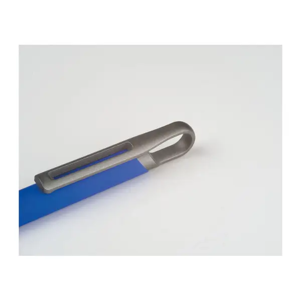Gumírozott bevonatú, puha tapintású golyóstoll újrahasznosított alumíniumból, kék színű zselés tollbetéttel. Vékony de jól olvasható írást biztosít, 0,5 mm-es vonalvastagsággal.