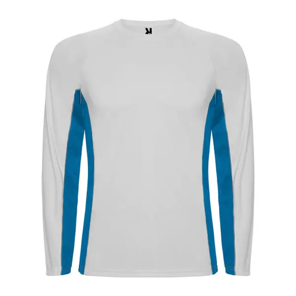 Kombinált technikai póló, két poliészterből. Hosszú, raglán stílusú ujjak. Bird's eye fő szövettel és mikroperforált szövettel az oldalsó betéteken és belül az ujjakon. Kerek nyak és belül megerősítő varrásfedő. Kellemes szövetű póló, amely könnyen a testre simul.