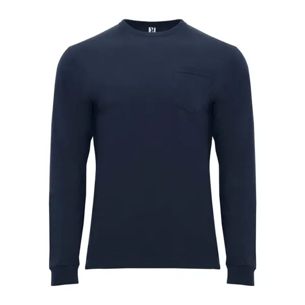 Hosszú ujjú póló, 1x1-es bordázású mandzsettákkal és kerek nyakkal. Bal oldalon mellzsebbel. A nyakon és a vállakon megerősített varrásfedő.