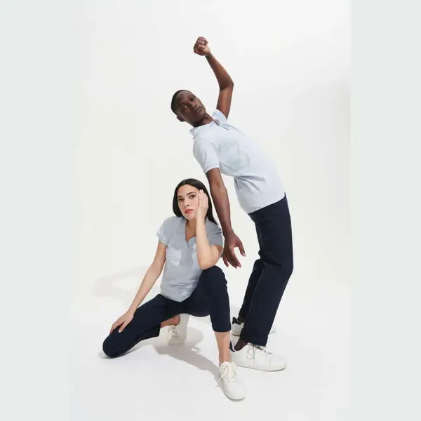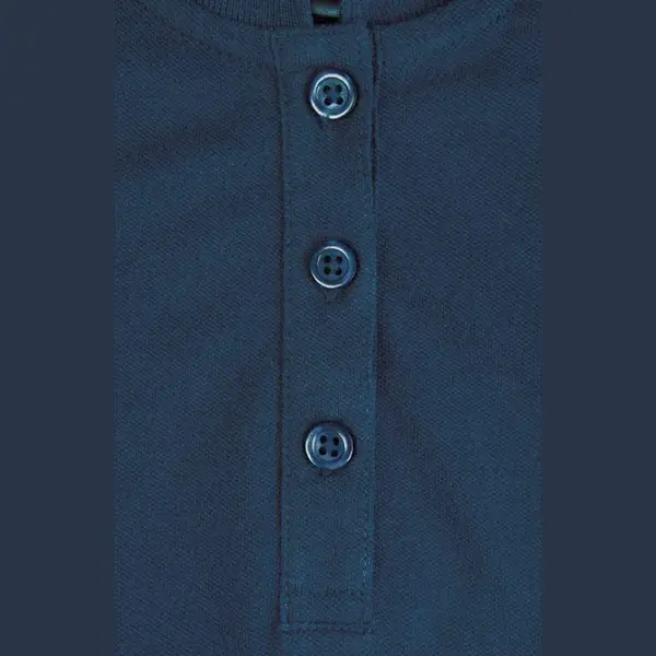 100% fésült piké pamut;1x1 kötésű bordás gallér. és ujjpasszé;Szalagerősített nyakvonal;3 gyöngyház fényű. színben illeszkedő;Duplaöltésű aljszegés;Pótgomb az oldalvarrásban;