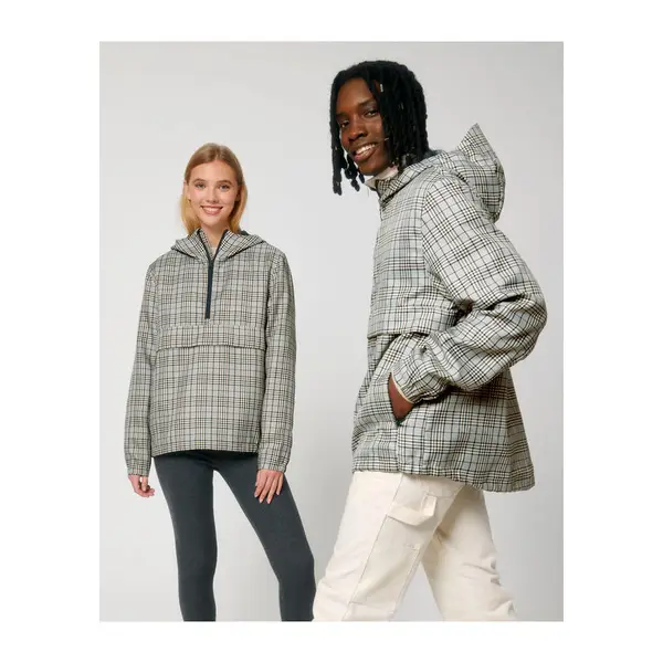 Elegáns uniszex tweed dzseki, amely hosszított hátrésszel, dupla rétegű, állítható kapucnival és cipzáras zsebekkel rendelkezik. Az ívelt szegély extra védelmet nyújt, és megkönnyíti a személyre szabást.