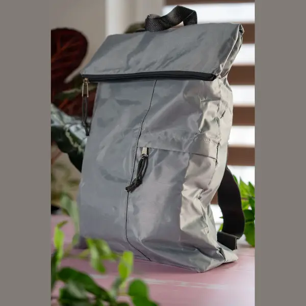 Összehajtható könnyű hátizsák 420 D RPET anyagból, mely ideális utazásokhoz.