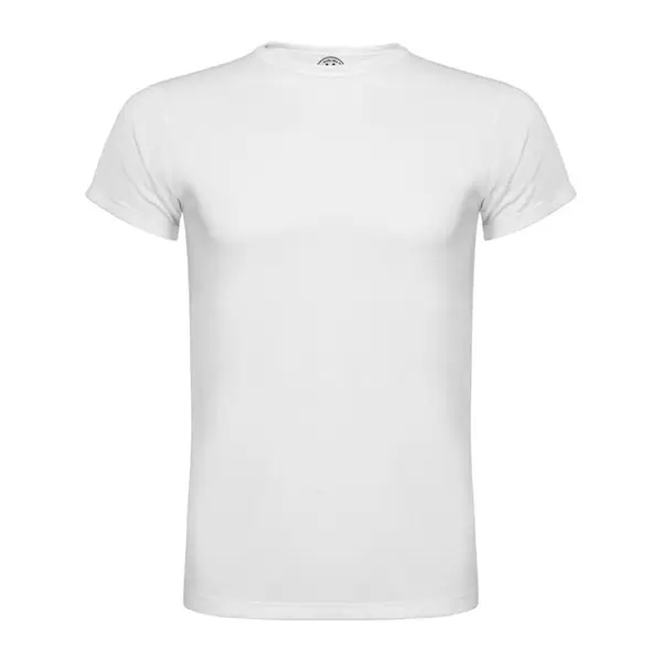 Rövid ujjú póló, azonos anyagból készült díszszegélyes, kerek nyakkal és oldalsó varrásokkal. Pamut tapintású poliészterből készült.