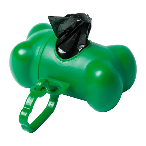 Csont alakú műanyag tartó, 15 db kutyapiszok gyűjtő zacskóval és karabinerrel.