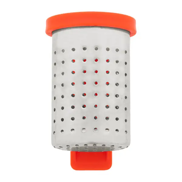 Rozsdamentes acél teaszűrő praktikus klipszes tartóval, újrahasznosított ABS műanyagből. Könnyen rögzíthető a bögre peremére.