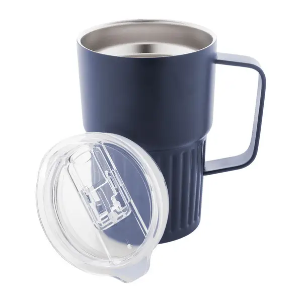 Duplafalú, újrahasznosított rozsdamentes acélból készült hőszigetelt thermo bögre ABS műanyag ivófedéllel. 470 ml.