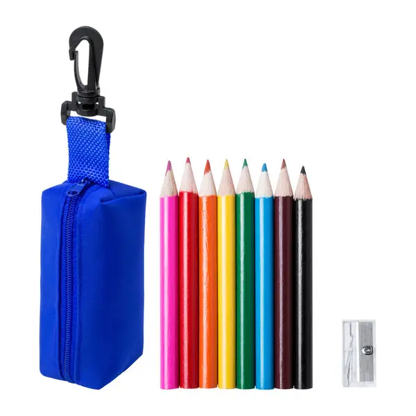 Színesceruza-készlet, mely 8 db színes fa ceruzát és 1 db hegyezőt tartalmaz. Cipzáras tokban szállítjuk, 420D poliészter.