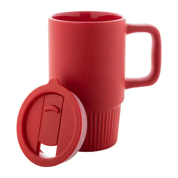 Kiváló minőségű kerámia utazóbögre matt külső bevonattal és PP műanyag ivófedéllel. 420 ml.