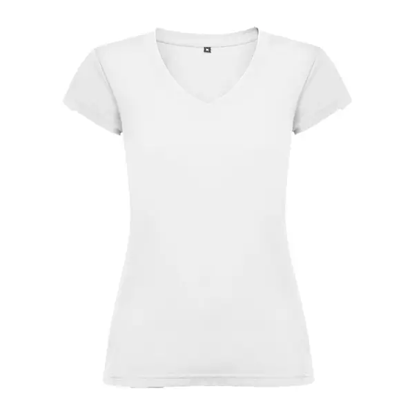 Rövid ujjú női póló, V nyakkivágással és bordás szegélyekkel. Alakkiemelő szabás, oldalsó varrásokkal.