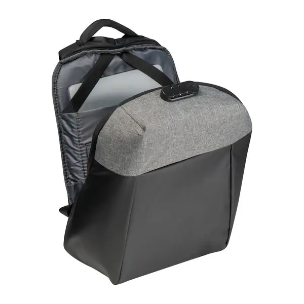 Merevített 600D poliészter hátizsák laptop és lopásbiztos -rekesszel, USB porttal, párnázott pántokkal és TSR kombinációs zárral.